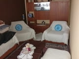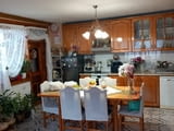 Масивна триетажна фамилна къща, удобна за обитаване от три семейства. ПЪРВИ ЕТАЖ: склад за нехранителни стоки/работилница, самостоятелен вход към дневна с кухненска част, спалня, коридор и санитарен възел и отделен вход към стълбищна клетка с още една голяма стая/с още един вход от улицата за обособяване на търговски обект; ВТОРИ ЕТАЖ: стълбищна клетка с отделен вход от улицата, три спални, две дневни, два санитарни възела и две тераси - удобен за обитаване от две семейства; ТРЕТИ/ТАВАНСКИ/ ЕТАЖ /ЕДНО ЦЯЛО ПОМЕЩЕНИЕ С ДВЕ ТЕРАСИ/- УДОБЕН ЗА ПРЕУСТРОЙСТВО ЗА ОЩЕ ЕДИН ЖИЛИЩЕН ЕТАЖ. КЪЩАТА Е ОБЗАВЕДЕНА/БЕЗ ТРЕТИЯ ЕТАЖ/. Външна и вътрешна дървена дограма. Подови настилки - естествено дърво и ламинат. Собственост върху ид. част от дворното място - застроено и незастроено.