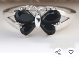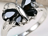 Ексклузивен дамски моден пръстен с пеперуда от черни фасетирани сапфири.