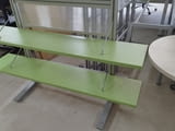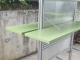 Продавам Алуминиева етажерка едностранна преграда / паравани между с размер ширина 150/ височина 182см. Цената от 185 е за едностранна етажерката с два рафта. Към нея може с конзоли да се монтират и още еди или два допълнителни рафта . Цената от 35лв е за комплект рафт с двойка конзоли - рафтоносачи , рафта е с размер 30/150см и дебелина 2, 5см материала е ПДЧ и цвета е дъб сонома или зелен.