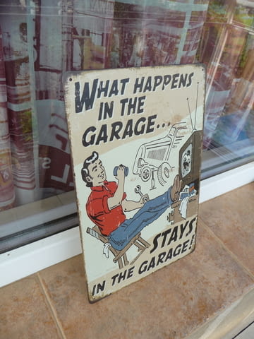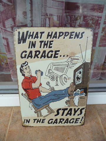 Защо стои в гаража метална табела майстор монтьор ремонт коли работа в гаража
