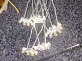 Лот, състоящ се от 6 броя игли за коса с форма на коронки и 1 фибичка. Камъчетата са смесени бели и тип хамелеон (моля, вижте снимките!).
