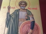Икона на Свети вкм. Мина, репродукция с дървена рамка и стъкло