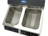 С капацитет 2 x 8 литра, мощност 2 x 3, 5 kW и прецизно регулиране на температурата от 60°С до 190°С, този уред е идеален за ресторанти, пицарии, барове и хотели. Компактният дизайн и здравата неръждаема конструкция го правят надежден избор за натоварени кухни.