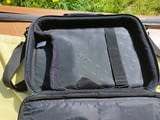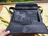 Всичко и работи, циповете са здрави, няма протрито или скъсано. Многофункционална, отделения за документи, множество джобове. Презрамка. Размерите са 41х10х30см, има ги и на снимките