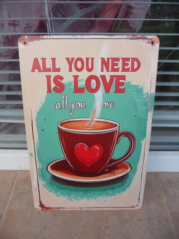 Метална табела Всеки се нуждае от любов и обича кафе кафенце декорация кафене