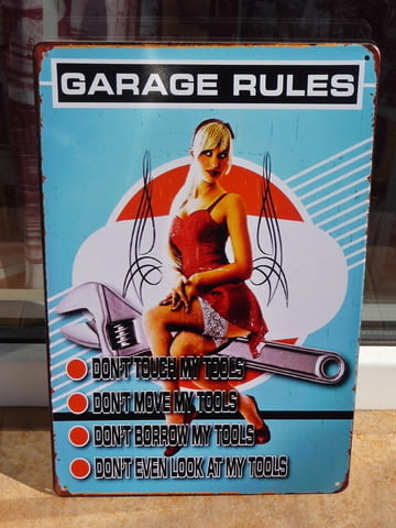 Метална табела кола Правила на гаража не пипай мести еротика