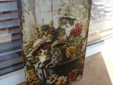 Метална табела котета котенца цветя саксия разни количка сладки сладички шапки декорация