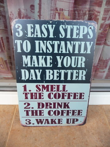 Метална табела надпис кафе 3 лесни стъпки за да стане денят по-хубав