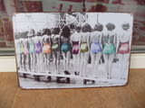 Метална ламаринена табела - Момичета с балони пред стенен часовник.
