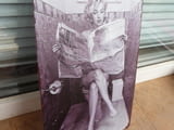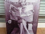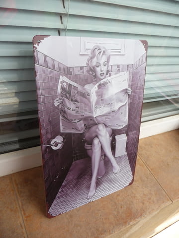 Метална ламаринена табела Мерилин Монро чете вестник в тоалетната.
