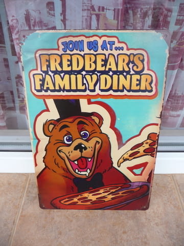 Метална табела храна Семейна пицария Мечка яде пица ресторантче вкусно заповядайте
