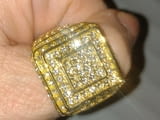 Внушителен силно искрящ моден мъжки пръстен в покритие от злато и с множествено диаманти.