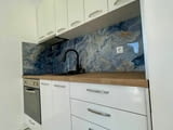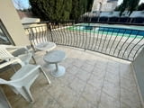 Прекрасен ваканционен или за постоянно обитаване луксозен имот, разположен на първи етаж от четириетажна сграда с един вход и разпределение: голяма дневна с обособена кухненска част, спалня, антре, санитарен възел и тераса с гледка басеин. Необзаведен. Подови настилки ламинат и гранитогрес. Модерно кухненско обзавеждане. Много светлина. Югоизточно изложение. Сградата е с външни топлоизолации. Прекрасно поддържани вътрешни и външни общи части. Асансьор. Комплексът разполага с басеин, зона барбекю и детска площадка. В съседство има два големи паркинга. Собственици на имоти в комплекса са клиенти от 6 националности. Годишна такса за поддръжка и охрана: 9Е/кв.м. Отстояние от плажната ивица - 300 метра. За връзка с нас използвайте посочените телефони и ел. поща:. В същата сграда разполагаме с още един апартамент с една спалня/обзаведен/ и три апартамента с по две спални/обзаведени/.