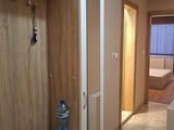Двустаен апартамент, обзаведен, непреходни стаи, ПВЦ дограми, подови настилки теракот и паркет, състои се от хол с кухня, отделна спалня, коридор, санитарен възел и две тераси. Отопление с тец.