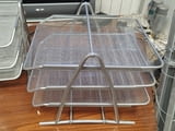 Продавам поставка за документи - Метален органайзер за документи с 3 рафта - 3 метални мрежести тави . Тавите са подвижни . Органайзерите са използвани но в добро състояние. Имам налични 4бр. Цената е 10€ /бр.