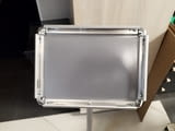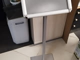 Продавам Рекламна иформационна табела - снап рамка за лесна смяна на информацията - отпечатва се информацията на лист А4 24/34см и се сменя, рамката е на стойка височината е 100см. Стойката е алуминиева а основата е метална с размер 24/30см