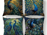 4 броя модна маслена живопис с пауни в стил винтидж.