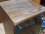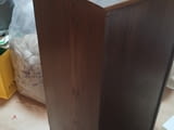 Продавам шкаф витрина цвят палисандър - орех (кафеникав с дървесна шарка) със стъклена врата и рафт, размерите са ширина42см / дълбочина 44см/ височина 91см. Шкафа е здрав с минимални следи от употреба като дребни драскотини. Плота е от масив. Шкафа е със здрави кантове и панти и метална тръжка.