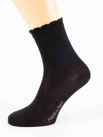 Nigra Victoria памучни чорапи до средата на прасците с завършващ къдрав ластик, произведени от италианската марка за памучни чорапи Nigra / Нигра. Универсални от топъл памук, удобни и семпли, отлични за целогодишно носене. На всяка опаковка е написано, че продуктът е произведен в Италия ( made in Italy ). Цената е за 1 чифт = 2 бр чорапи.
