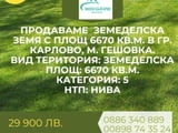 Земеделска земя гр. Карлово Агенция Недвижими имоти в България продава земеделска земя с площ 6670 кв.м. в гр. Карлово, м. Гешовка. Вид територия: ...