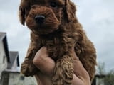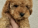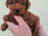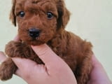 Miniature poodles and toy in red and apricot ready for pickup.
