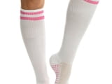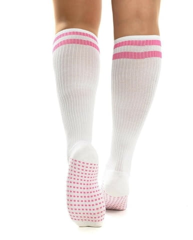 2 чифта x Sisi Basket / 1422 фигурални плътни и памучни чорапи до коляно, украсени с яркорозови квадратчета и завършваща яркорозова линия на бял фон; с оформена пета; произведени от италианската марка за памучни чорапи Sisi / Сиси. На всяка тарелка е изписано, че са произведени в Италия ( made in Italy ). Цената е за 2 чифта - 4 броя чорапи.