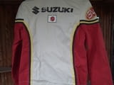 Suzuki ретро винтидж дамско мото яке, специална колекция The early days of motorcycles, ново, но е възможно да е било мостра в магазин, 100% памук, размер US L, DE 40, UK 14, F/E 42, I 46, дължина отзад 58 см., обиколка около 102, гръб 42, ръкав отгоре 66 и отдолу 53 (имам и един размер по-голямо - XL), надписите по него не са изтъркани - това му е оригиналният дизайн, цена в магазин 129 евро, моята цена: 109 лв.
